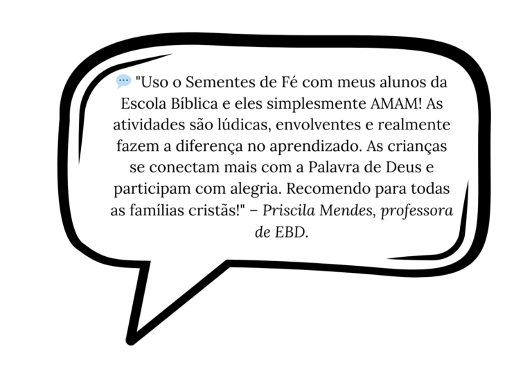 O Kit Sementes de Fé é essencial para pais que desejam transformar o tempo em família em uma nova experiência espiritual e educativa com seus filhos. Com atividades bíblicas divertidas e envolventes, este kit proporciona momentos de aprendizado e conexão enquanto ensina valores cristãos e habilidades essenciais.